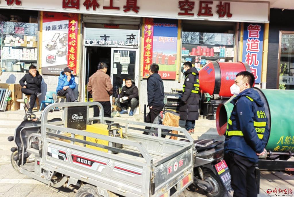 近日,市生態(tài)環(huán)境局定襄分局執(zhí)法隊(duì)在責(zé)任片區(qū)開(kāi)展市容市貌專(zhuān)項(xiàng)整治工作。執(zhí)法人員對(duì)違規(guī)商戶進(jìn)行勸導(dǎo),引導(dǎo)他們自覺(jué)糾正占道經(jīng)營(yíng)行為。 (照片來(lái)源:市生態(tài)環(huán)境局官網(wǎng))