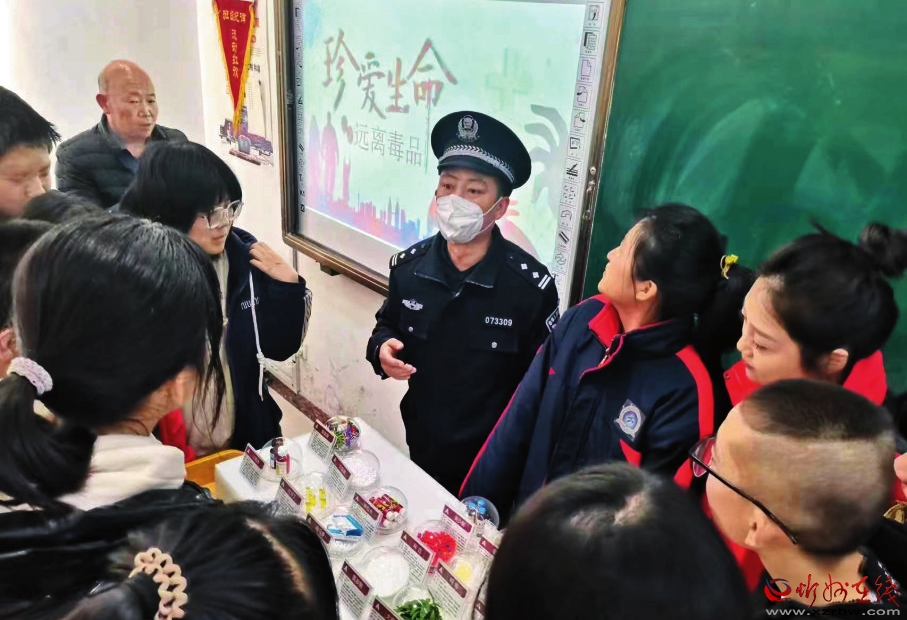 為持續(xù)深化毒品預(yù)防教育工作,增強師生識毒、防毒、拒毒的意識和能力,筑牢校園禁毒防線,近日,市公安局忻府分局董村派出所民警聯(lián)合社區(qū)戒毒(康復(fù))中心工作人員,走進董村中學(xué),開展禁毒宣傳教育活動。
