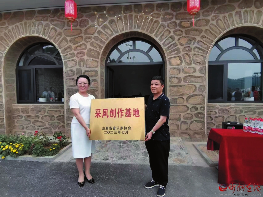 省音協(xié)常務(wù)副主席白云,原平市委常委、宣傳部部長(zhǎng)張志男為采風(fēng)創(chuàng)作基地愛(ài)木圖景區(qū)授牌。