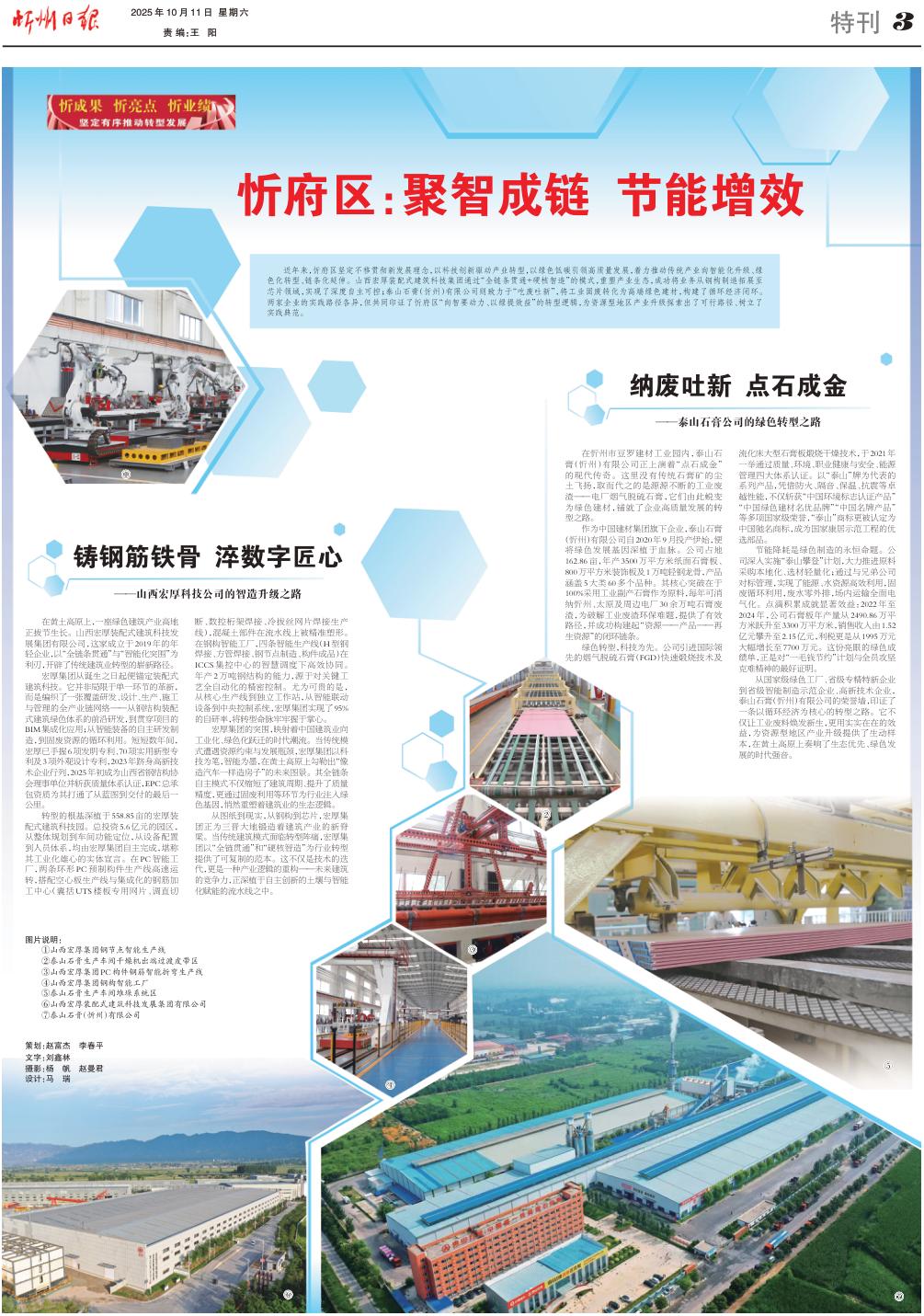 近年來,忻府區(qū)堅(jiān)定不移貫徹新發(fā)展理念,以科技創(chuàng)新驅(qū)動(dòng)產(chǎn)業(yè)轉(zhuǎn)型,以綠色低碳引領(lǐng)高質(zhì)量發(fā)展,著力推動(dòng)傳統(tǒng)產(chǎn)業(yè)向智能化升級(jí)、綠色化轉(zhuǎn)型、鏈條化延伸。山西宏厚裝配式建筑科技集團(tuán)通過“全鏈條貫通+硬核智造”的模式,重塑產(chǎn)業(yè)生態(tài),成功將業(yè)務(wù)從鋼構(gòu)制造拓展至芯片領(lǐng)域,實(shí)現(xiàn)了深度自主可控;泰山石膏(忻州)有限公司則致力于“吃廢吐新”,將工業(yè)固廢轉(zhuǎn)化為高端綠色建材,構(gòu)建了循環(huán)經(jīng)濟(jì)閉環(huán)。兩家企業(yè)的實(shí)踐路徑各異,但共同印證了忻府區(qū)“向智要?jiǎng)恿Α⒁跃G提效益”的轉(zhuǎn)型邏輯,為資源型地區(qū)產(chǎn)業(yè)升級(jí)探索出了可行路徑、樹立了實(shí)踐典范。