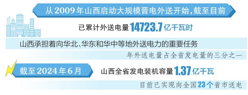 記者了解到,山西承擔(dān)著向華北、華東和華中等地外送電力的重要任務(wù),年外送電量占全省發(fā)電量的三分之一。截至2024年6月,山西全省發(fā)電裝機(jī)容量1.37億千瓦,電力外送基礎(chǔ)不斷夯實(shí),目前山西已實(shí)現(xiàn)向全國23個省市送電。