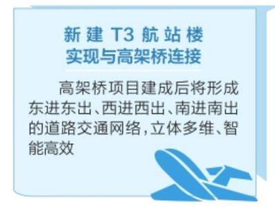 高架橋項(xiàng)目建成后將連接現(xiàn)有機(jī)場(chǎng)航站樓和新建T3航站樓、綜合交通中心及機(jī)場(chǎng)東路等,形成東進(jìn)東出、西進(jìn)西出、南進(jìn)南出的道路交通網(wǎng)絡(luò),達(dá)到立體多維、智能高效的交通疏導(dǎo)目標(biāo),實(shí)現(xiàn)便捷、快速進(jìn)出機(jī)場(chǎng)的功能。