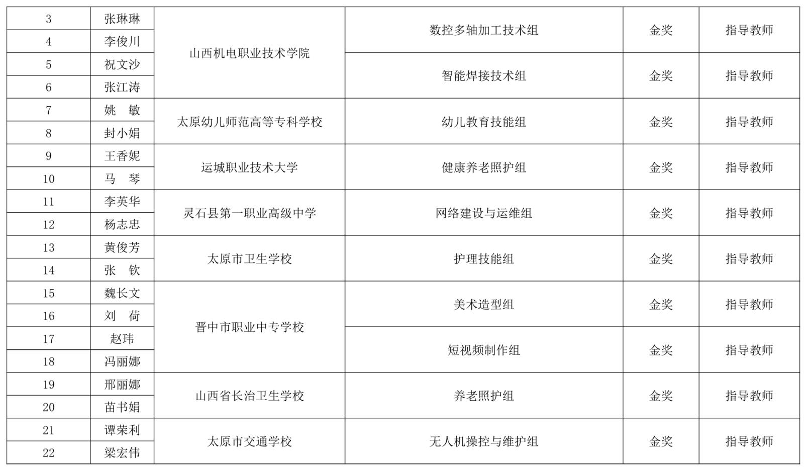 山西日報客戶端綜合報道 近日,山西省教育廳印發(fā)《關(guān)于認定2024年度山西省職業(yè)教育教學名師的通知》(以下簡稱《通知》),將2024年獲得國家級在線精品課程負責人、世界職業(yè)院校技能大賽金獎指導教師、全國模范教師、全國優(yōu)秀教師共48人認定為2024年度山西省職業(yè)教育教學名師。 《通知》明確,各市教育局、各職業(yè)學校要大力宣傳職業(yè)教育教學名師的先進事跡,引導廣大教師進一步增強責任感和使命感,教書育人、培根鑄魂,銳意進取、勇創(chuàng)佳績,營造爭做職業(yè)教育教學名師的良好氛圍。希望廣大教師以教學名師為榜樣,大力弘揚教育家精神,牢記為黨育人、為國育才的初心使命,樹立“躬耕教壇、強國有我”的志向和抱負,開拓創(chuàng)新、真抓實干,努力培養(yǎng)德智體美勞全面發(fā)展的社會主義建設(shè)者和接班人,為推動教育強省建設(shè)作出更大貢獻。 具體名單如下: