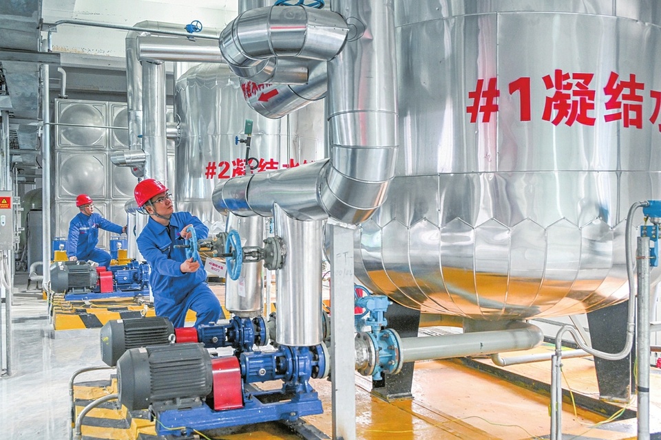 1月31日,山西省平遙一礦焦化有限公司供熱首站車間,技術(shù)人員在調(diào)控設(shè)備。梁生仁攝