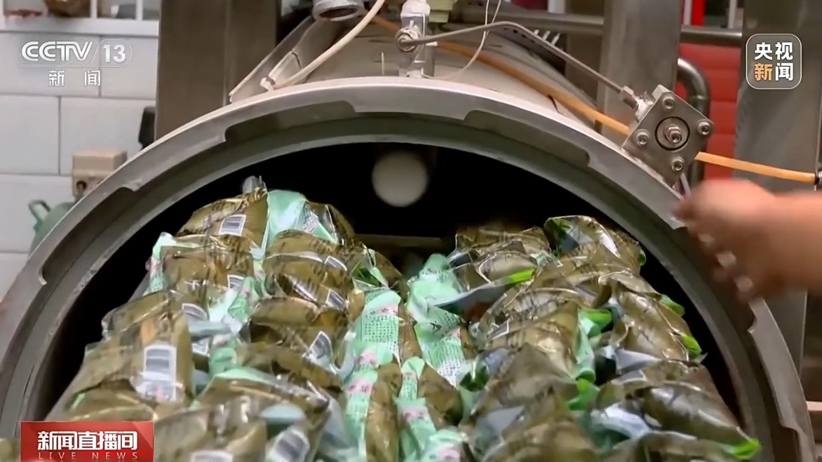 劉軍芳去大企業(yè)學(xué)習(xí),建起了一個集蒸煮、滅菌、真空包裝于一體的加工坊。針對市場的新特點,他與非遺傳承人探討,對傳統(tǒng)制作工藝和口味進行改良,用三片葉子包出了新型粽子,在保留“吉祥團圓、五谷豐登”美好寓意的同時,也更加符合現(xiàn)代消費者的需求。