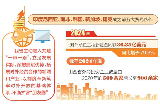 對(duì)外投資和工程承包業(yè)務(wù)同樣是我省共建“一帶一路”的一大亮點(diǎn)。2024年不斷完善海外綜合服務(wù)體系,非金融類直接投資達(dá)6517萬(wàn)美元,同比大增408.7%。這表明山西省企業(yè)加快了“走出去”的步伐,積極在海外布局,拓展國(guó)際投資領(lǐng)域,尋求更廣闊的發(fā)展空間和資源。同時(shí),對(duì)外承包工程新簽合同額36.35億美元,同比增長(zhǎng)79.3%。截至2024年底,山西省外商投資企業(yè)數(shù)量由2020年的500余家增長(zhǎng)至900余家。