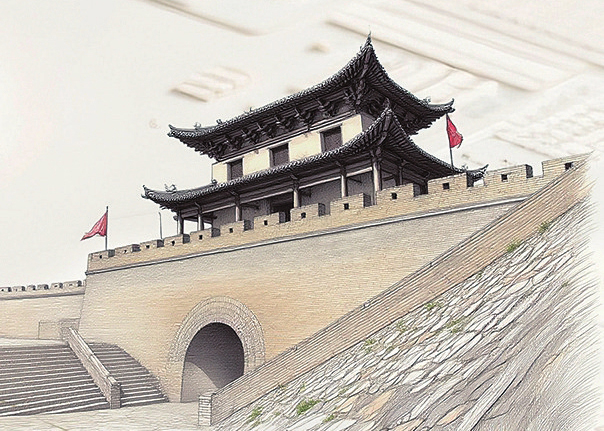 驅(qū)車向東南而行(220km),雁門關(guān)的青灰色關(guān)樓在層巒中若隱若現(xiàn),這里被譽(yù)為“中華第一關(guān)”。行走在關(guān)城的城墻上,極目遠(yuǎn)眺,連綿的山巒和蜿蜒的長(zhǎng)城盡收眼底。