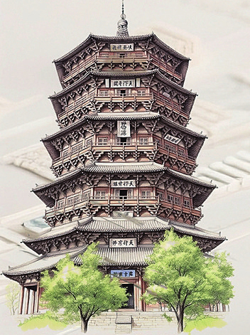 走進(jìn)佛宮寺,寺內(nèi)寧?kù)o與清涼相互交融。在塔下駐足,欣賞著木塔精美的斗拱和牌匾,便能感受到古代工匠的的智慧。
