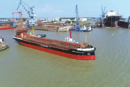 本報(bào)訊(記者安曉奕)9月5日,兩艘3800噸級(jí)綠色智能電推干散貨船在上海華潤(rùn)大東船務(wù)工程有限公司順利下水,標(biāo)志著山西華遠(yuǎn)陸港跨境電子商務(wù)有限公司海外造船訂單取得關(guān)鍵進(jìn)展,更彰顯了我省作為內(nèi)陸省份在海洋裝備制造領(lǐng)域的跨越式發(fā)展。