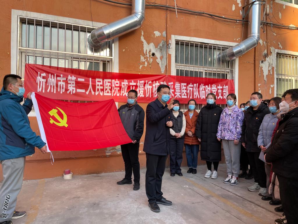 哪里有任務(wù),哪里就有黨旗飄揚(yáng)。在疫情防控一線成立臨時(shí)黨組織,是忻州市第二人民醫(yī)院黨委堅(jiān)持黨建引領(lǐng),充分發(fā)揮基層黨組織戰(zhàn)斗堡壘作用和共產(chǎn)黨員先鋒模范作用全力投身抗擊疫情防控工作的一個(gè)縮影,也是全體支援人員聽(tīng)黨指揮、不負(fù)初心的使命擔(dān)當(dāng)。自忻府區(qū)發(fā)生輸入性疫情以來(lái),該院于2月23日和25日緊急抽調(diào)101名醫(yī)療骨干隊(duì)員趕赴忻府區(qū)支援核酸采集任務(wù)。連日來(lái),全體支援人員克服困難,全力以赴,24小時(shí)堅(jiān)守在抗擊疫情第一線,為打贏這場(chǎng)疫情阻擊戰(zhàn)貢獻(xiàn)著二院力量。