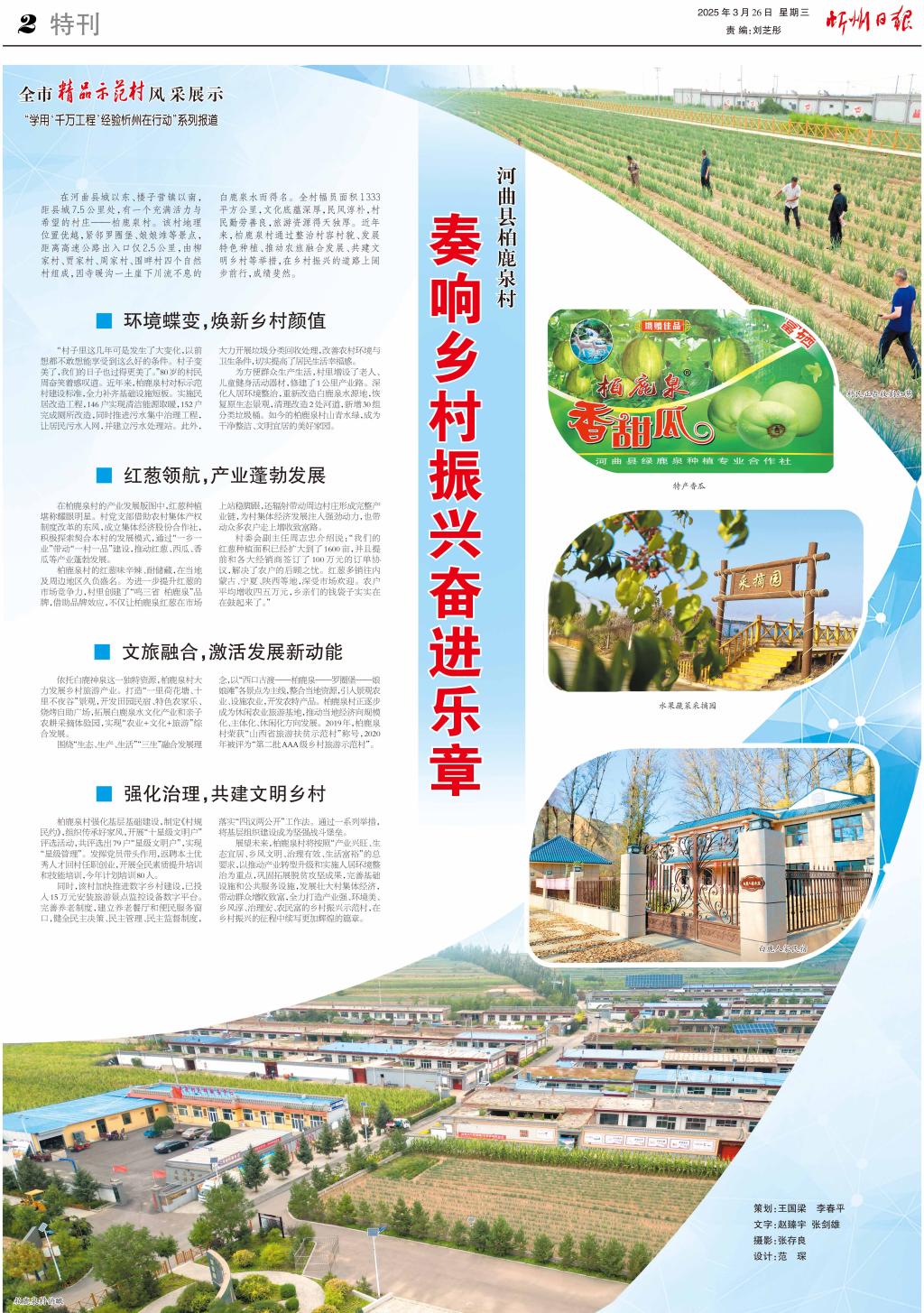 在河曲縣城以東、樓子營鎮(zhèn)以南,距縣城7.5公里處,有一個充滿活力與希望的村莊——柏鹿泉村。該村地理位置優(yōu)越,緊鄰羅圈堡、娘娘灘等景點,距離高速公路出入口僅2.5公里,由柳家村、賈家村、周家村、圍畔村四個自然村組成,因寺暖溝一土崖下川流不息的白鹿泉水而得名。全村幅員面積1333平方公里,文化底蘊深厚,民風(fēng)淳樸,村民勤勞善良,旅游資源得天獨厚。近年來,柏鹿泉村通過整治村容村貌、發(fā)展特色種植、推動農(nóng)旅融合發(fā)展、共建文明鄉(xiāng)村等舉措,在鄉(xiāng)村振興的道路上闊步前行,成績斐然。