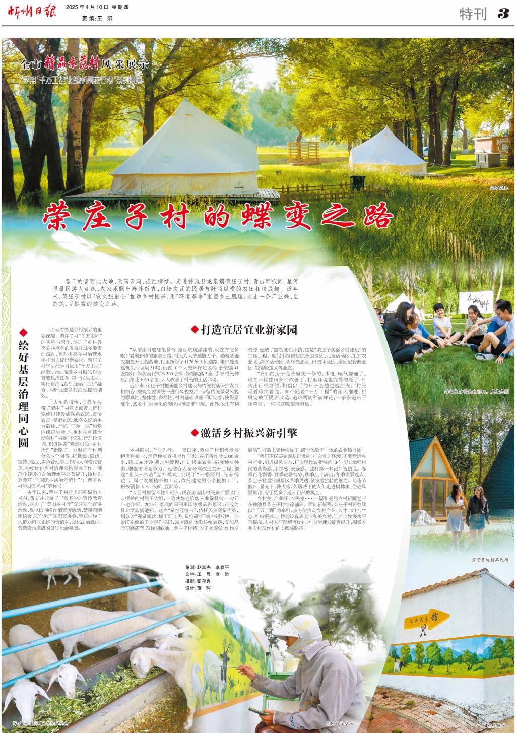 鄉(xiāng)村美、產(chǎn)業(yè)旺、農(nóng)民富……一幅和美的鄉(xiāng)村新畫卷正在神池縣榮莊子村徐徐鋪展。面向新征程,榮莊子村將繼續(xù)以“千萬工程”為牽引,全方位推動鄉(xiāng)村產(chǎn)業(yè)、人才、文化、生態(tài)、組織振興,加快建設(shè)宜居宜業(yè)和美鄉(xiāng)村,讓產(chǎn)業(yè)發(fā)展水平再提高、農(nóng)村人居環(huán)境再優(yōu)化、社會治理效能再提升,探索農(nóng)業(yè)農(nóng)村現(xiàn)代化的實(shí)踐新路徑。
