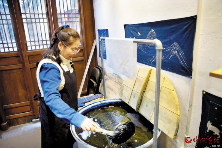 “染缸是我最寶貝的東西。我對(duì)它就像對(duì)待孩子,不能冷著、熱著、累著、餓著。”趙慧說,天然染料的缸需要“養(yǎng)”,冬天冷了烤暖氣,夏天熱了吹空調(diào),還要不時(shí)添加?xùn)|西,“這個(gè)缸我‘養(yǎng)’了四年多,叫它‘藍(lán)寶寶’。”