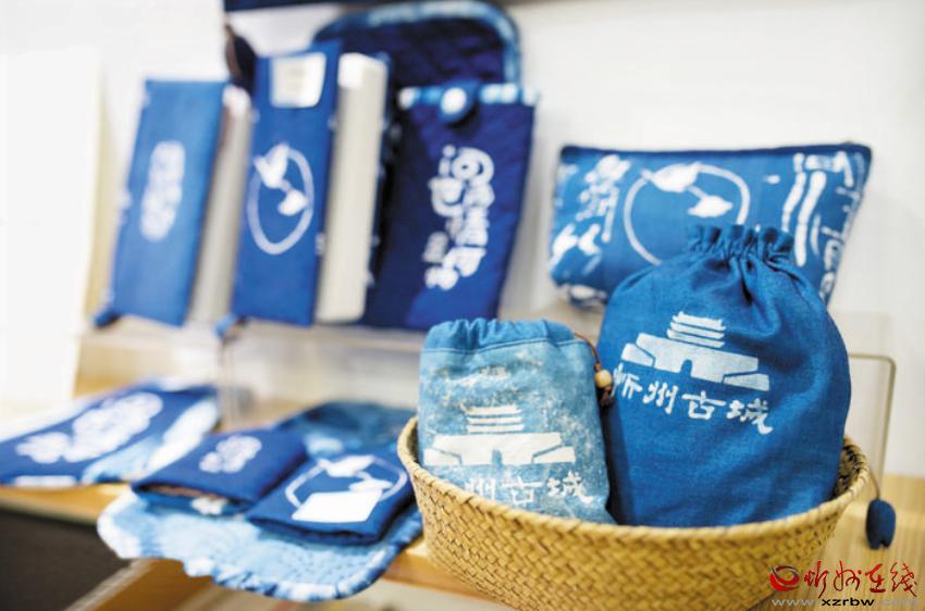 “傳統(tǒng)的印染手法有‘四纈’之說,即夾纈(夾染)、蠟纈(蠟染)、絞纈(扎染)、灰纈(藍(lán)印花布)。扎染與灰纈是我最常用的。”趙慧說,相較于其他印染手法,灰纈操作簡(jiǎn)單便于量產(chǎn)且更易于設(shè)計(jì),能夠讓她把家鄉(xiāng)傳統(tǒng)文化融入其中,讓更多人知道忻州、認(rèn)識(shí)山西。
