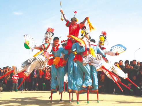 閣蹺類。以道具制作精妙神奇、表演技巧驚險(xiǎn)動人為廣大群眾喜愛,其中晉南地區(qū)的最有代表性。閣蹺主要分推棍、背棍、劃棍、高蹺。