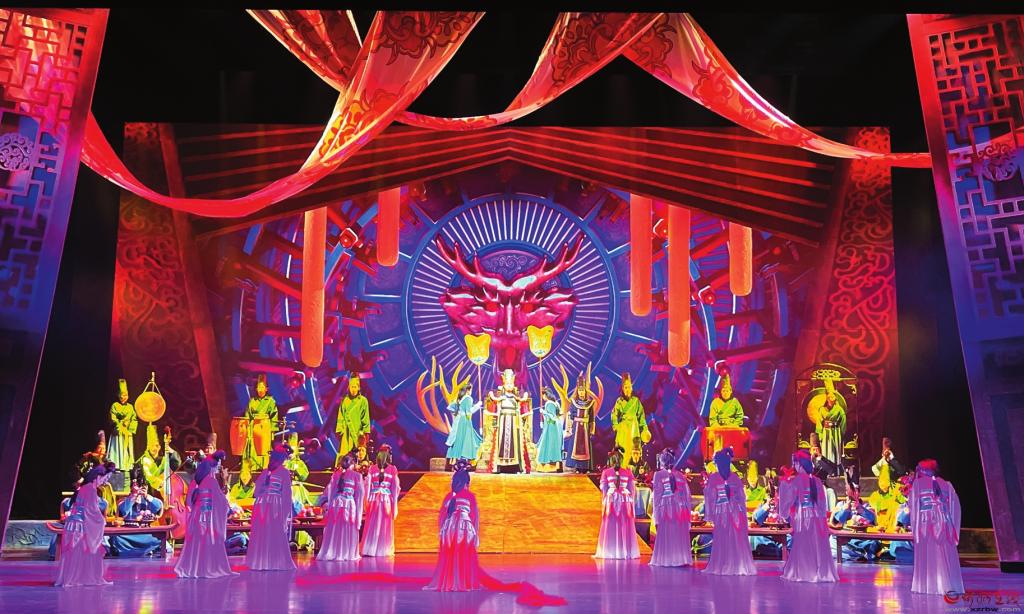“傳統(tǒng)文化不應(yīng)該只停留在紙面或解說里,可以通過更直觀、更形象的方式,讓藝術(shù)和公眾形成一種互動(dòng),滿足公眾對(duì)文化可感的期待?!笨倢?dǎo)演劉建斌表示?!朵镌囱彭崱氛且劳幸魳窞檩d體,融合了琵琶、竹笛和笙等中國傳統(tǒng)器樂,以及繁峙秧歌戲、北路梆子、八音會(huì)等地方特色文化元素,展現(xiàn)出北魏時(shí)期民族音樂在融合中兼收并蓄的多元文化特質(zhì)。“音樂”和“語言”的雙重表述,通過服裝、燈光、造型及多媒體舞美技術(shù),呈現(xiàn)出令人耳目一新的華美樂章。
