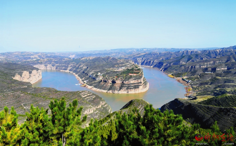 黃河至此,被大山阻隔,繞山而行,畫出了“S”形大彎。