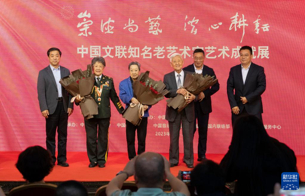 當(dāng)日,第六屆中國文聯(lián)知名老藝術(shù)家藝術(shù)成就展在中國文藝家之家展覽館開幕。新華社記者 才揚(yáng) 攝