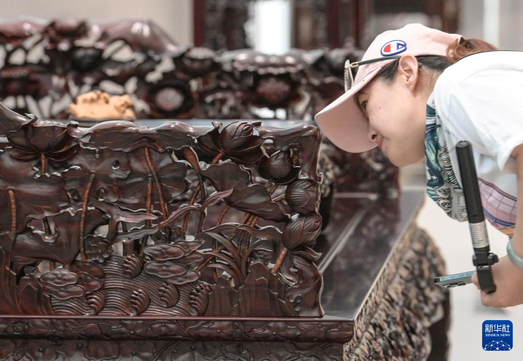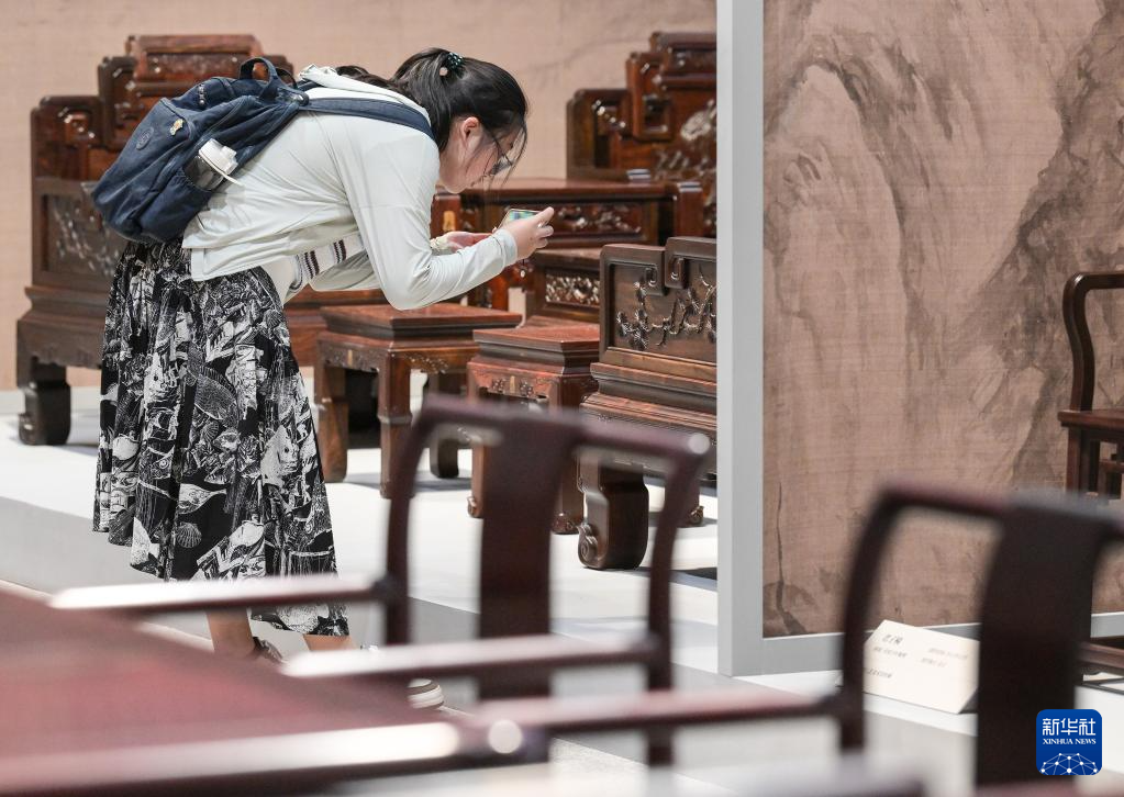6月27日,觀眾在參觀展覽。 當日,“心·傳——陳玉樹新時代古典家具藝術(shù)展”在位于北京的中國工藝美術(shù)館、中國非物質(zhì)文化遺產(chǎn)館舉辦,展出了高級工藝美術(shù)師陳玉樹近年創(chuàng)作的20套古典家具,展現(xiàn)出中國木作技藝之美。新華社記者 李賀 攝 (責任編輯:盧相?。?/span> |