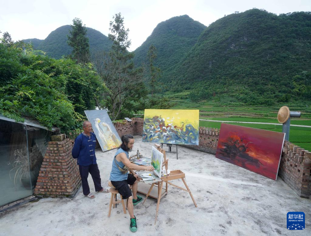 7月3日,在貴州省荔波縣朝陽鎮(zhèn)洪江村,來自各地的藝術(shù)從業(yè)者進(jìn)行藝術(shù)交流。