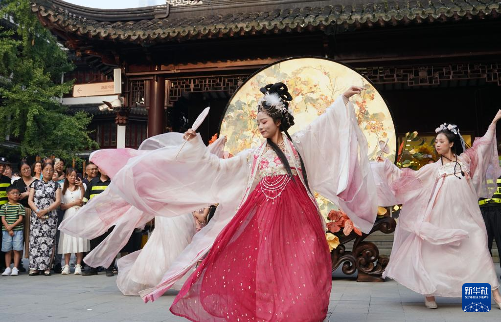 9月17日,演員在豫園商城中心廣場(chǎng)表演國(guó)風(fēng)舞蹈。