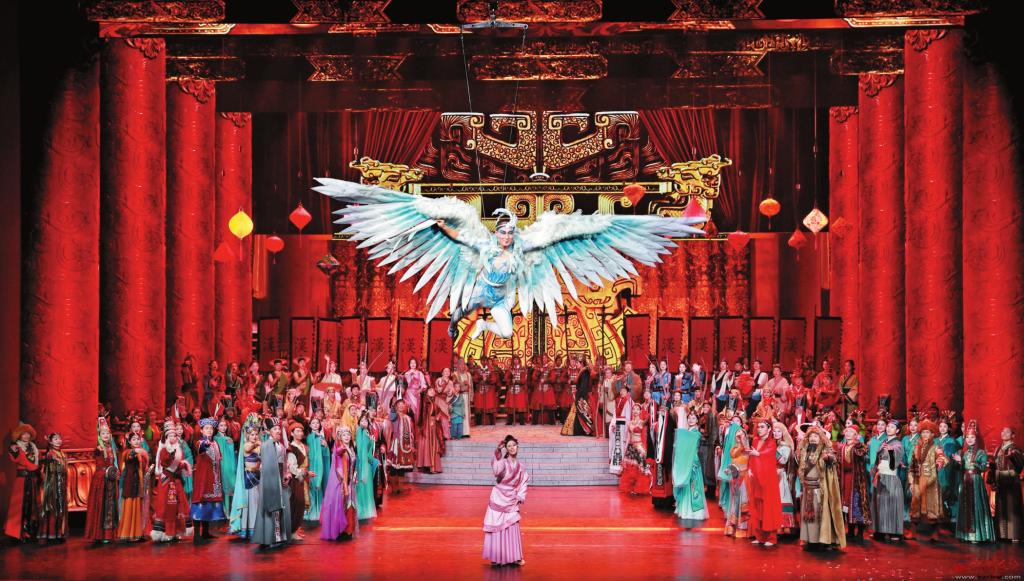 戲劇月的開幕大戲是詩(shī)樂舞大秀《天下歸心》,作品在舞臺(tái)空間上立體展示了濃郁國(guó)風(fēng)特色的時(shí)空布局和視覺風(fēng)格,劇場(chǎng)內(nèi)敦煌飛天式實(shí)景呈現(xiàn),“詩(shī)”有相、“樂”有形、“舞”傳神,再現(xiàn)了雁門關(guān)外的金戈鐵馬,以德化民的泰安繁榮,流傳千年的文景之治……作品通過大漢王朝和匈奴之間在雁門關(guān)地域,從戰(zhàn)爭(zhēng)到盟約、再到通婚的歷史故事,表現(xiàn)出“天下一家”的理念。觀眾身臨其境地享受到了一場(chǎng)不可多得的視聽和精神盛宴。該劇也是忻州大劇院建成以來首次對(duì)外公開演出。