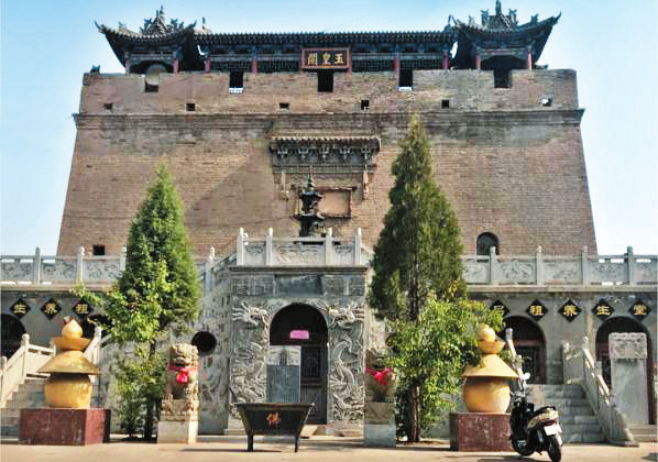 護(hù)城樓位于河曲縣文筆鎮(zhèn)北元村北城墻外10米處,明代建筑。據(jù)城樓匾額題記載,建于明萬歷年(公元1573年至公元1620年),重修于1996年4月14日。南北長27米,東西寬21米,占地面積567平方米。坐北朝南,為二層磚木結(jié)構(gòu)。一層臺基高3.5米,中部設(shè)拱券門,前有石砌臺階相連,券門門額石匾書“鎮(zhèn)虜”二字。匾額上砌垂花門樓,檐下設(shè)三踩單翹斗拱。劵門兩側(cè)設(shè)拱形小窗。二層四周設(shè)女兒墻,有玉皇閣一座,建于清乾隆三十一年。殿身面寬三間,進(jìn)深四椽,單檐硬山頂,五檁無廊式構(gòu)架,斗拱一斗二升交麻葉。東西為鐘樓、鼓樓。1984年河曲縣人民政府公布其為縣級文物保護(hù)單位;2007年6月6日被忻州市人民政府公布為第一批市級文物保護(hù)單位;2016年6月6日被山西省人民政府公布為第五批省級文物保護(hù)單位。