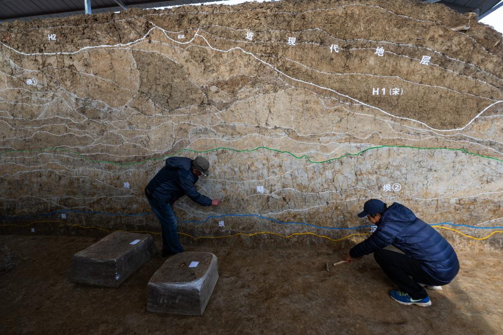 2023年12月4日,考古人員在熊家?guī)X水壩遺址現(xiàn)場進行考古工作。新華社記者肖藝九 攝
