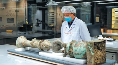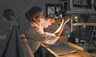 數(shù)字采集 考古人員在實驗室,對三星堆出土文物進(jìn)行高光譜掃描。廣漢市委宣傳部供圖