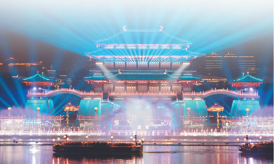 陜西西安大唐芙蓉園的水舞光影秀。彭 華攝(影像中國)