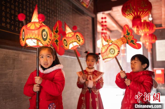 孩子們正在舞動(dòng)魚燈。 童俊霖?cái)z