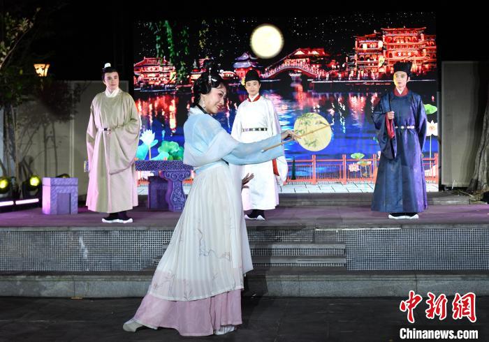 圖為“宋詞里的福建”沉浸式戲劇在福州西湖畔的福建博物院東區(qū)金麟小苑上演。 中新網(wǎng)記者 呂明 攝