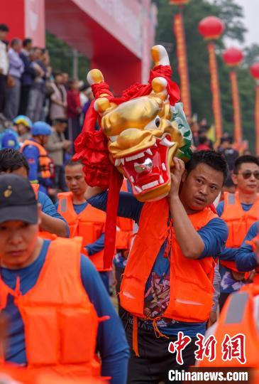 6月6日,龍舟“活水”儀式在江西省新余市仙女湖區(qū)昌山廟袁河水域舉行。趙春亮攝