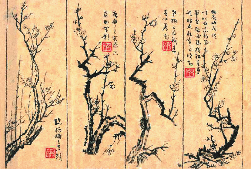 史載彥的梅花作品多為“墨梅”,有明顯的宋人風(fēng)格。據(jù)史家考證,最早用水墨創(chuàng)作梅畫的應(yīng)是北宋僧人釋仲仁。釋仲仁,號華光,南宋書畫家趙孟頫曾說,“世之論墨梅者,皆以華光為稱首”,因而釋仲仁也被譽(yù)為“墨梅始祖”,其所撰《華光梅譜》成為首部較為系統(tǒng)的畫梅專著。釋仲仁后,湯正仲、徐渭、陳錄、陳繼儒等在墨梅技法上造詣頗深,使水墨梅藝漸成青出于藍(lán)之勢。