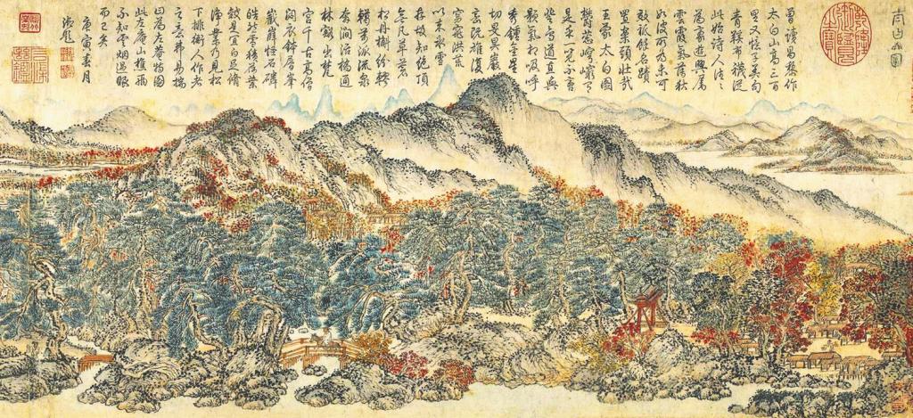用畫筆記錄旅行見聞,不僅是當(dāng)代畫家的樂事,也為部分古代畫家所熱衷。譬如,作為“元四家”之一的王蒙就喜繪山川勝景,特別是對觀察和表現(xiàn)家鄉(xiāng)浙江的山水充滿熱情,其作品《太白山圖》描繪的就是寧波太白山。全卷展開順序與行旅順序一致,細(xì)致表現(xiàn)了從山中前往天童寺的沿途景致。元末明初畫家王履基于自身訪游經(jīng)歷繪制了《華山圖》冊,多日攀爬歷經(jīng)險絕,讓王履對華山、對天地自然、對山水傳統(tǒng)和筆墨有了顛覆性的新認(rèn)識。整套冊頁以水墨表現(xiàn)為主,山體多使用小斧劈皴,體現(xiàn)了山石之堅硬,樹木用筆雖簡但顯示出挺秀之姿。這套冊頁著重表現(xiàn)華山之險峻,并為后世創(chuàng)作提供了新啟示。