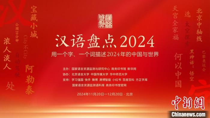 由國家語言資源監(jiān)測與研究中心、商務印書館等聯合主辦的“漢語盤點2024”20日在京啟動,“用一個字、一個詞描述當年的中國與世界”,鼓勵全民用語言記錄生活,描述中國視野下的社會變遷和世界萬象。