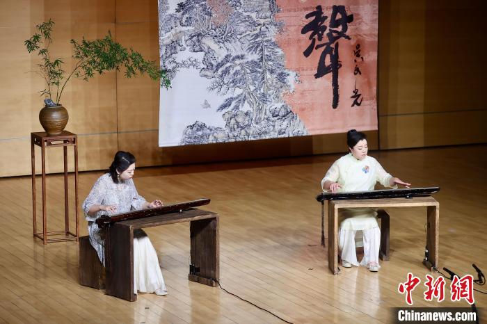 2024年12月,中國(guó)音樂(lè)學(xué)院“弦外有琴聲——古琴專(zhuān)場(chǎng)音樂(lè)會(huì)”,該校國(guó)樂(lè)系副教授黃梅(右)和碩士研究生李孟潔(左)演奏雙琴版《流水》。中新社記者 易海菲 攝