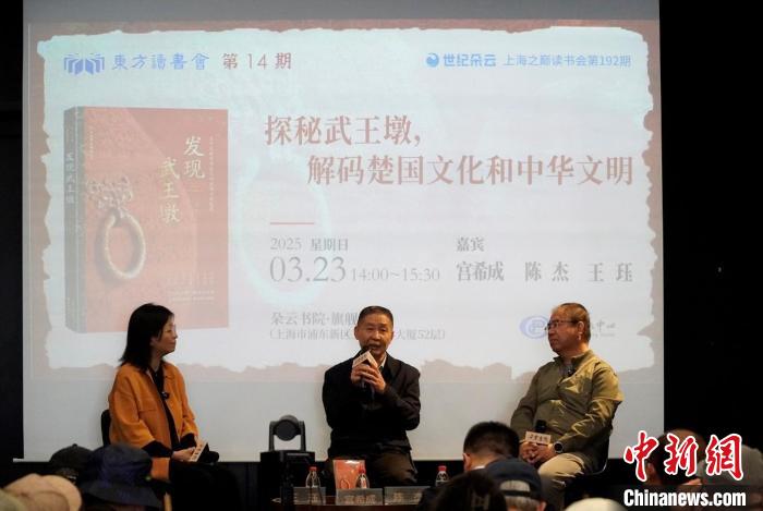 中新網(wǎng)上海3月24日電 (記者 王笈)由東方出版中心主辦的東方讀書會(huì)之“探秘武王墩,解碼楚國(guó)文化和中華文明”23日在上海舉行,圍繞《發(fā)現(xiàn)武王墩》一書以及武王墩墓的發(fā)掘進(jìn)展、出土文物等話題展開(kāi)精彩對(duì)談。