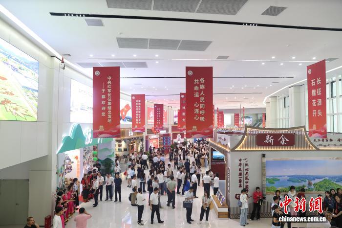 圖為9月23日,江西贛州于都縣,民族題材書畫攝影作品展和鑄牢中華民族共同體意識(shí)圖片展現(xiàn)場(chǎng)。劉力鑫 攝