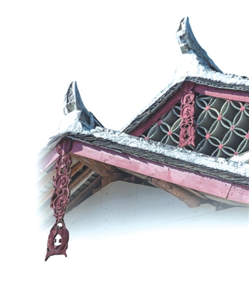 懸魚寓意豐富,蘊(yùn)含著古人對平安、幸福的向往。懸魚有祈求建筑免遭火災(zāi)的寓意,木結(jié)構(gòu)古建筑怕火,而魚為水中之物,懸魚有水能克火之意。不僅是懸魚,過去古建筑的屋頂上,常裝飾與水有關(guān)的意象,如龍、鴟吻、鰲魚、水草等。懸魚也有祈求吉祥、富貴有余等寓意。魚與“余”“?!敝C音,象征富余、富裕、吉慶有余。魚多子,也體現(xiàn)了人們祈求多子多孫的愿望。有的懸魚下端雕兩條尾部相交的游魚,寓意雙魚喜慶。懸魚除了使用魚的形象,也會采用其他紋樣,如蝙蝠紋樣,取“?!敝?;桃花、荷花、梅花、牡丹等紋樣,寓意吉祥、和美、富貴;花瓶紋樣,象征平安等。后來,懸魚不斷演化,有了卷云如意、飛禽等圖案,造型的式樣也日趨豐富。