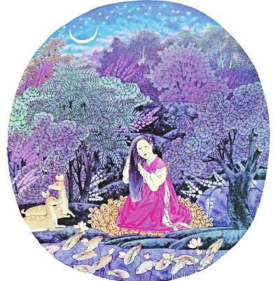 夏塘風(fēng)輕花落遲(中國畫)