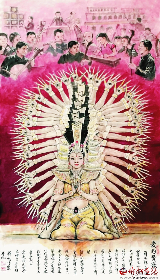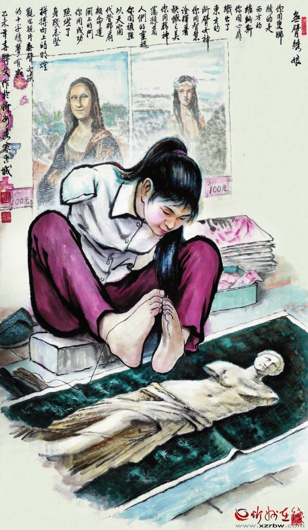 青春十八燦如霞,雙足人生巧繡花。 斷臂女孩心更美,靈魂技藝走天涯。 愛的贊歌