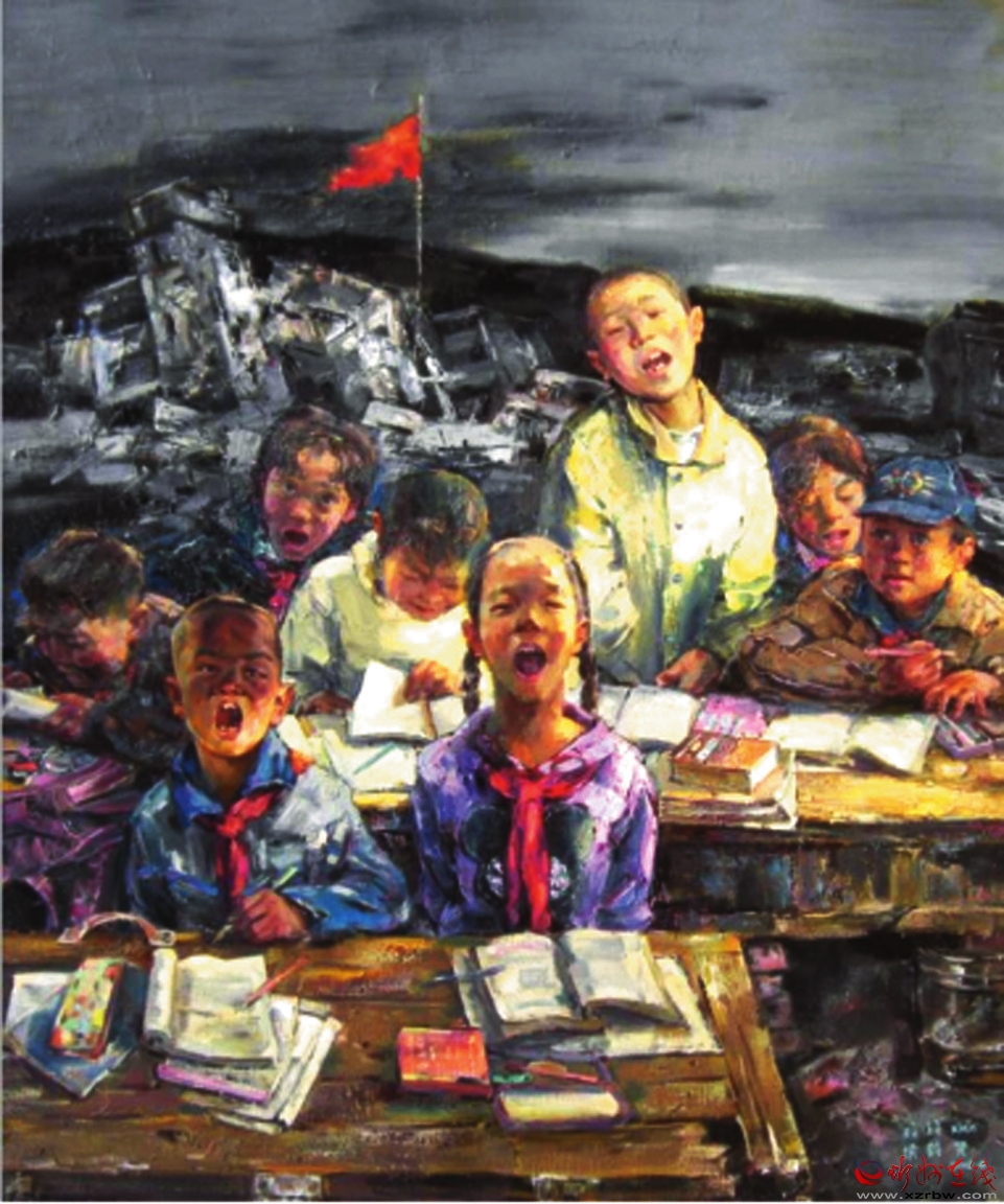 同樣表現(xiàn)地震題材的另一幅作品《震后復課》則展示出另外一種浪漫情懷,發(fā)人深省,令人感慨萬千。在尚未處理完畢的地震廢墟上,孩子們真誠地開始了希望的追求,展示著大震壓不垮的人性力量和災后最具震撼力的希望。是的,紅旗在哪里,精神支撐就在哪里。孩子是希望,是未來。在孩子們的臉上,沒有恐懼和悲哀,沒有茫然與無助,有的只是對知識的渴望,對未來的憧憬。一個角落的復課場景,映射著中華民族偉大復興的精神力量。 邢晨聲 文 (責任編輯:盧相?。?/span> |