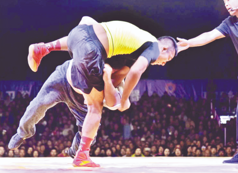 摔跤,為兩人相角的一項對抗性運動,作為一種文化現(xiàn)象由來已久。早在唐宋時期,忻州境內(nèi)的摔跤活動就非常盛行,而原平,更是摔跤沃土,英豪輩出。