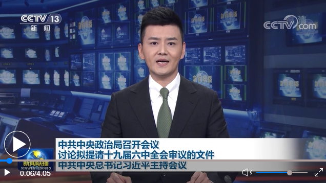 會(huì)議決定,中國共產(chǎn)黨第十九屆中央委員會(huì)第六次全體會(huì)議于11月8日至11日在北京召開。