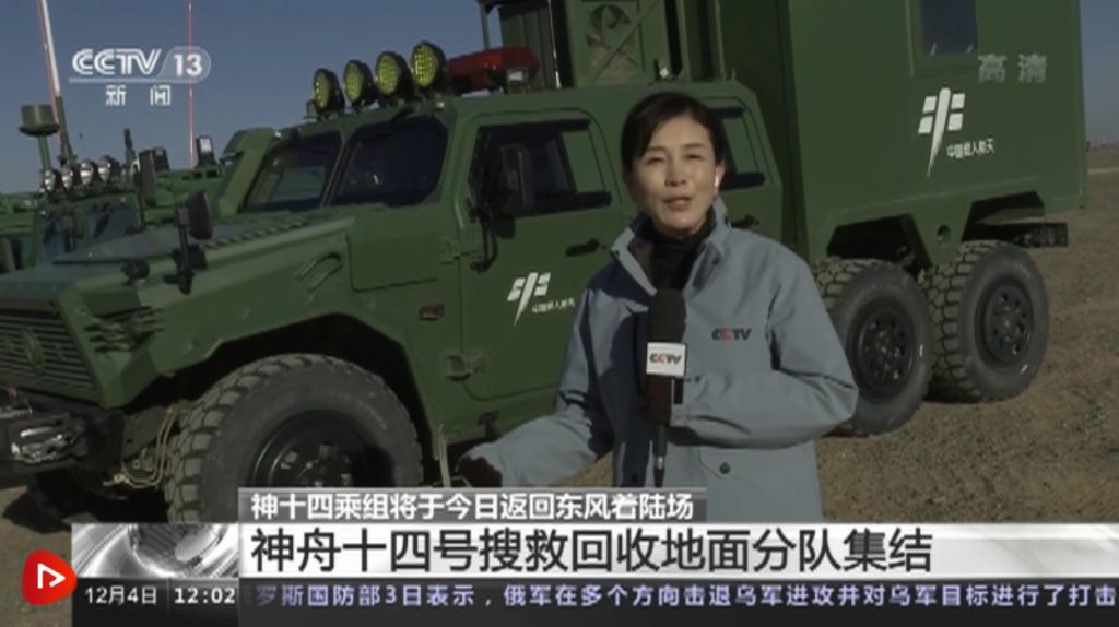 總臺(tái)央視記者 劉潔:隨著神舟十四號(hào)返回時(shí)間的臨近,東風(fēng)著陸場的搜救力量也做好了充分的準(zhǔn)備。我們看到地面分隊(duì)配備了很多車輛,比如說這輛小型搜索車,隊(duì)員們都親切地叫它“小搜”,搜救過程中,它會(huì)跑在整個(gè)隊(duì)伍的最前面,作為“急先鋒”的作用對返回艙進(jìn)行搜索。它與傳統(tǒng)的猛士車輛不同的是,它后面加裝了一個(gè)后車廂,可以乘坐6名隊(duì)員,加上前座的4名隊(duì)員,這10名隊(duì)員就有足夠的能力對返回艙進(jìn)行第一階段的處理工作。