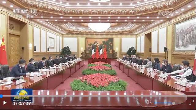 馬克龍表示,我對(duì)3年多前訪華情景記憶猶新,非常高興再次訪華,同習(xí)近平主席共同探討進(jìn)一步提升法中全面戰(zhàn)略伙伴關(guān)系。我完全贊同習(xí)近平主席對(duì)法中關(guān)系的積極評(píng)價(jià)以及就發(fā)展雙邊關(guān)系提出的重要建議。明年法中將共同慶祝建交60周年。60年來(lái),法中關(guān)系保持了穩(wěn)定健康發(fā)展。雖然法中兩國(guó)發(fā)展模式不同,但雙方相互尊重,坦誠(chéng)交流,各領(lǐng)域合作實(shí)現(xiàn)了互利互惠,同時(shí)在合作應(yīng)對(duì)當(dāng)今世界面臨的全球性挑戰(zhàn)方面取得重要進(jìn)展。法方尊重并奉行一個(gè)中國(guó)政策。我此次率龐大代表團(tuán)訪華,就是希望同中方加強(qiáng)合作,促進(jìn)人文交流。法方祝賀中方成功舉辦昆明-蒙特利爾《生物多樣性公約》第十五次締約方大會(huì),希望繼續(xù)在氣候變化、糧食安全等問(wèn)題上同中方密切溝通合作。中方將舉辦第三屆“一帶一路”國(guó)際合作高峰論壇,法方愿同中方就此開(kāi)展合作。法方贊賞中方始終遵守聯(lián)合國(guó)憲章宗旨,為解決國(guó)際地區(qū)熱點(diǎn)問(wèn)題發(fā)揮積極作用,期待同中方密切溝通協(xié)作,努力實(shí)現(xiàn)世界的持久和平與穩(wěn)定。