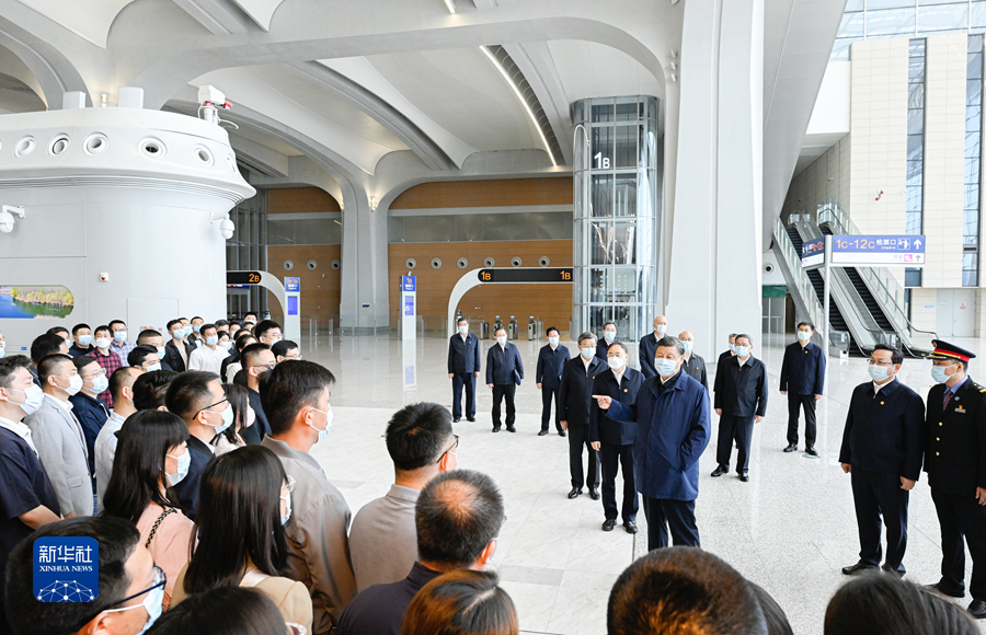 當(dāng)天上午,習(xí)近平乘高鐵前往雄安新區(qū),抵達(dá)后首先考察了雄安站的建設(shè)運(yùn)行情況。雄安站是雄安新區(qū)開工建設(shè)的第一個(gè)重大基礎(chǔ)設(shè)施項(xiàng)目,具有標(biāo)志性意義。習(xí)近平先后察看站臺(tái)、候車大廳、站外廣場(chǎng),了解雄安站建設(shè)運(yùn)營(yíng)和所在的昝崗片區(qū)規(guī)劃建設(shè)情況。習(xí)近平指出,雄安站是雄安新區(qū)的交匯車站,要進(jìn)一步完善聯(lián)通雄安站和雄安新區(qū)的交通“微細(xì)血管”,提升人流物流聚集和疏散的效率。要把昝崗片區(qū)建設(shè)成為高端高新產(chǎn)業(yè)集聚區(qū),讓各方來(lái)客一到雄安,就能感受到雄安新區(qū)撲面而來(lái)的現(xiàn)代化新氣象。