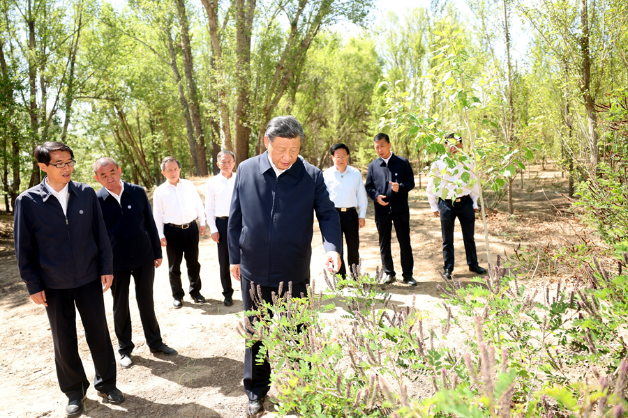 2023年6月5日至6日,中共中央總書記、國家主席、中央軍委主席習(xí)近平在內(nèi)蒙古巴彥淖爾考察,并主持召開加強荒漠化綜合防治和推進“三北”等重點生態(tài)工程建設(shè)座談會。這是5日下午,習(xí)近平在烏梁素??疾?。新華社記者 謝環(huán)馳 攝