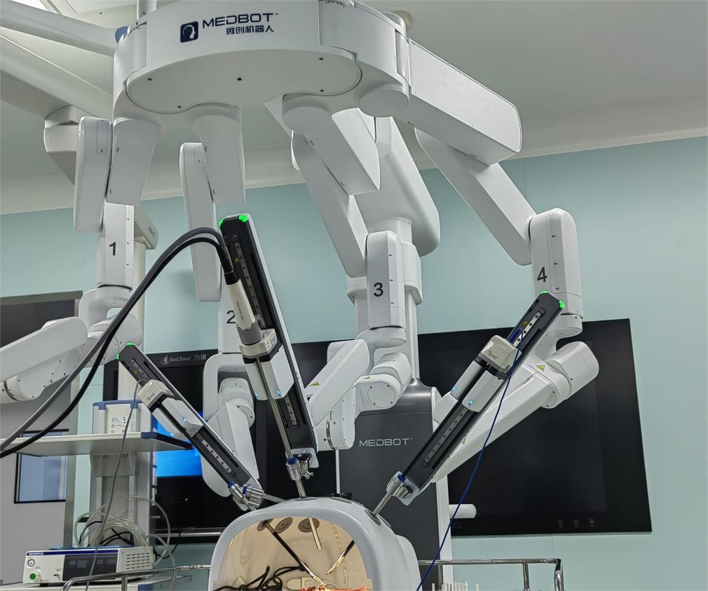 這是實(shí)施5G+AI超遠(yuǎn)程微創(chuàng)手術(shù)的四臂腔鏡機(jī)器人。(受訪者供圖)